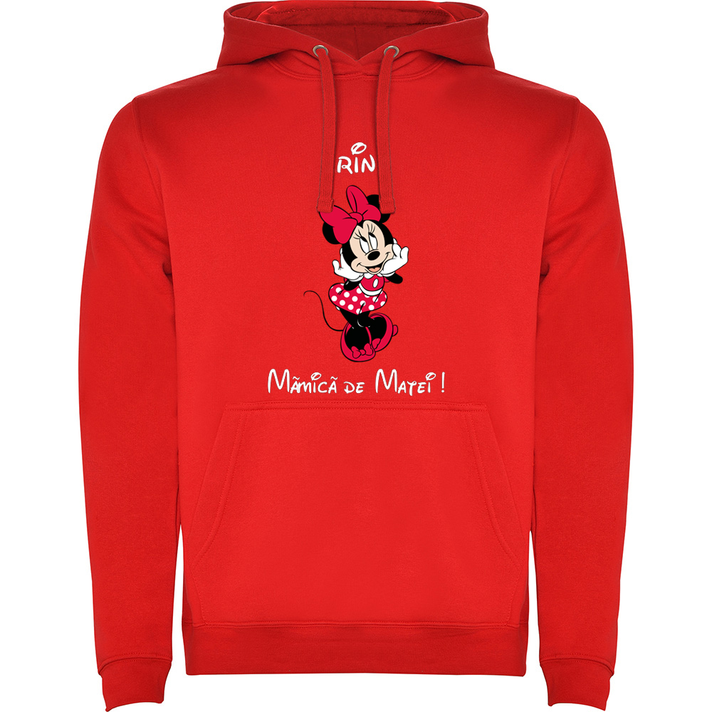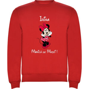 Hanorac personalizat cu mesaj aniversar ‘Mămică Minnie’ – imprimeu unic.
