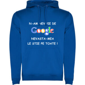 Acest tricou personalizat aduce un strop de umor în garderoba ta, printr-un mesaj ironic și ușor de recunoscut. Printul „Nu am nevoie de Google, nevasta-mea le știe pe toate!” este perfect pentru cei care apreciază glumele de zi cu zi și vor să transmită un mesaj relaxat, cu personalitate.