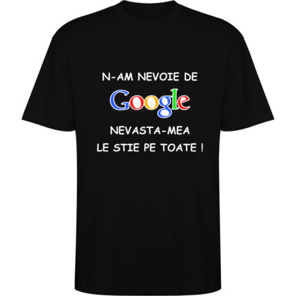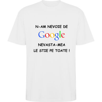 Tricou personalizat cu text amuzant – „Nu am nevoie de Google, nevasta-mea le știe pe toate!”