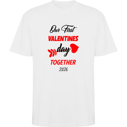 Tricou oversize personalizat ‘Our first Valentines Day’ – pentru cupluri.